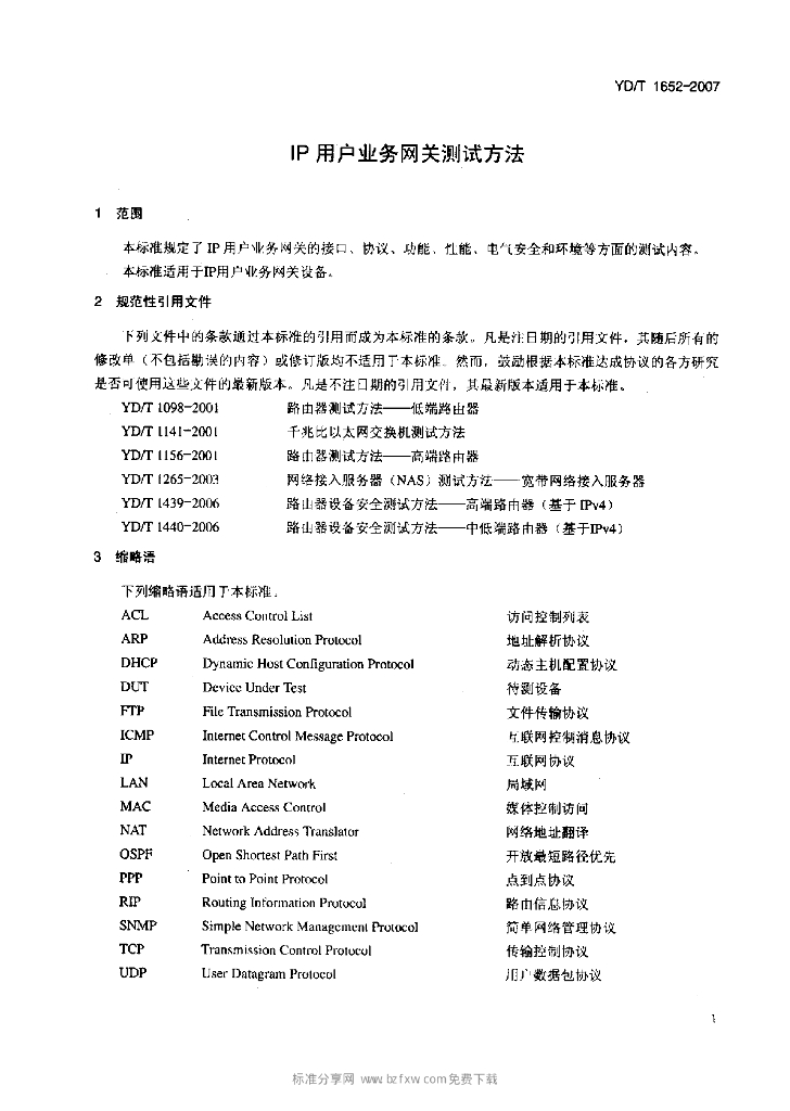 YD/T 1652-2007 IP 用户业务网关测试方法