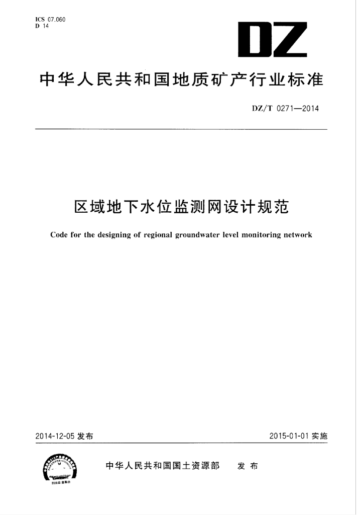 DZ/T 0271-2014 区域地下水位监测网设计规范