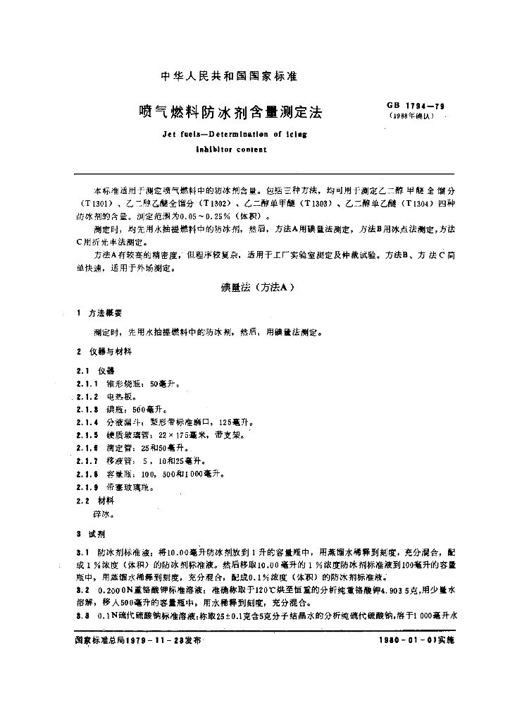 GB/T 1794-1979 喷气燃料防冰剂含量测定法