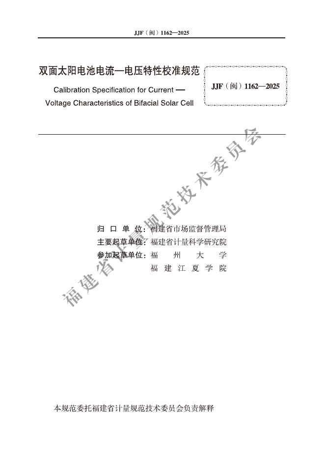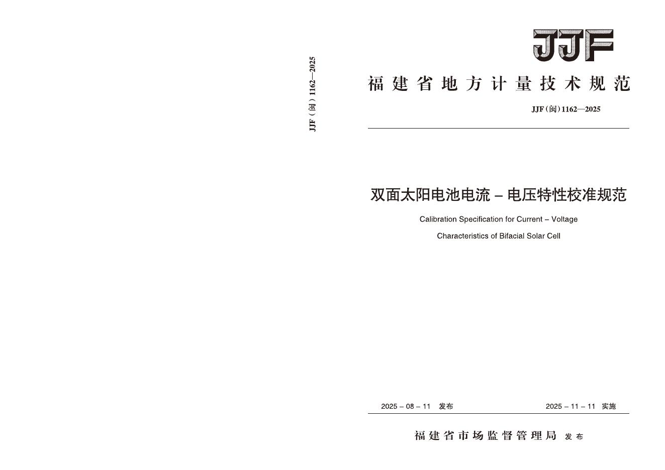 JJF(闽)1162-2025 双面太阳电池电流-电压特性校准规范