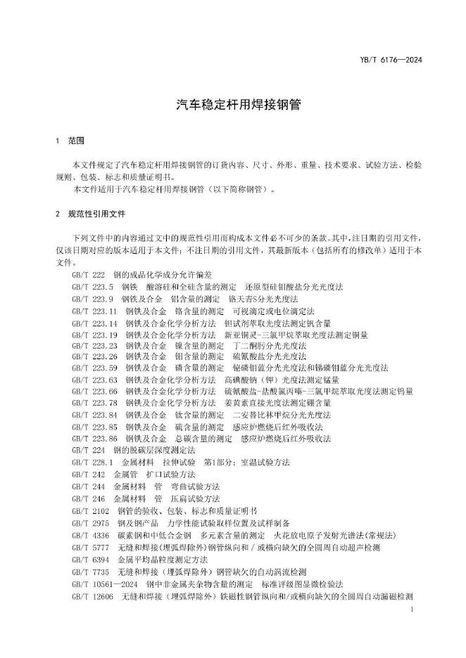 YB/T 6176-2024 汽车稳定杆用焊接钢管
