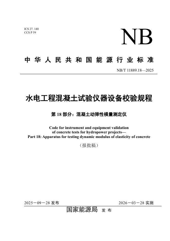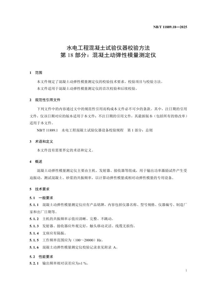 NB/T 11889.18-2025 水电工程混凝土试验仪器设备校验规程 第18部分:混凝土动弹性模量测定仪