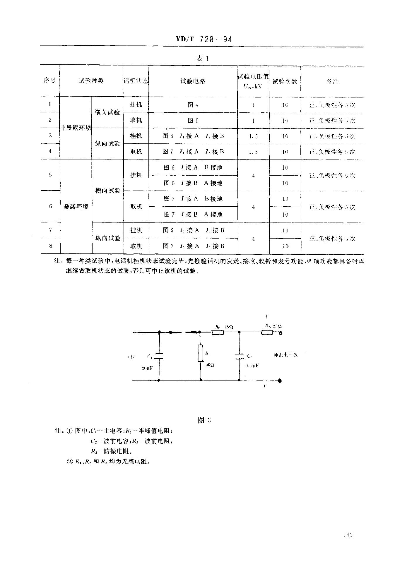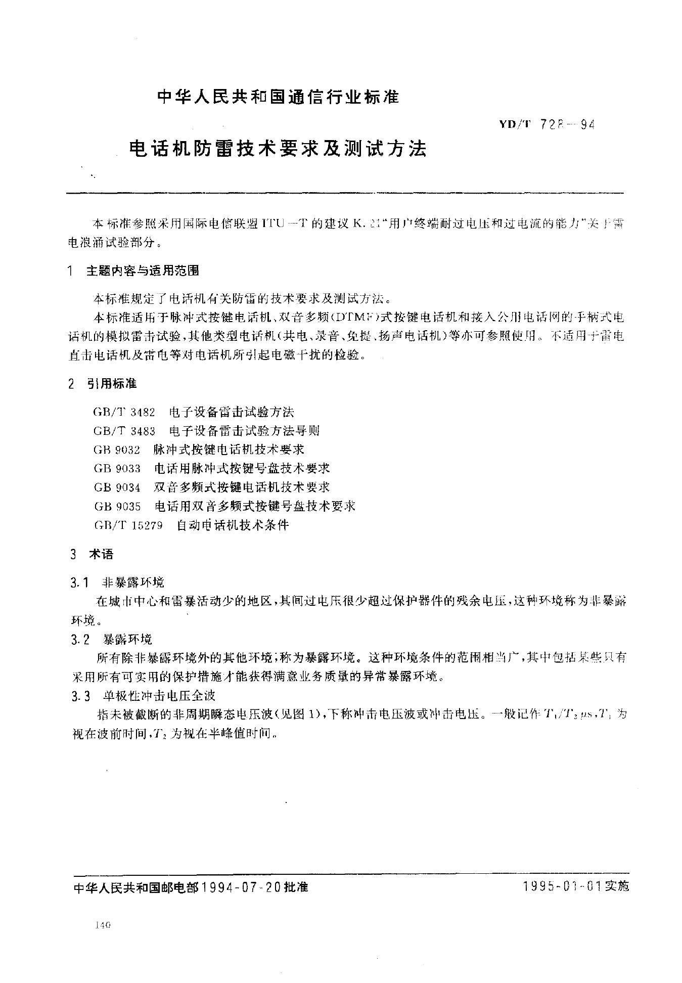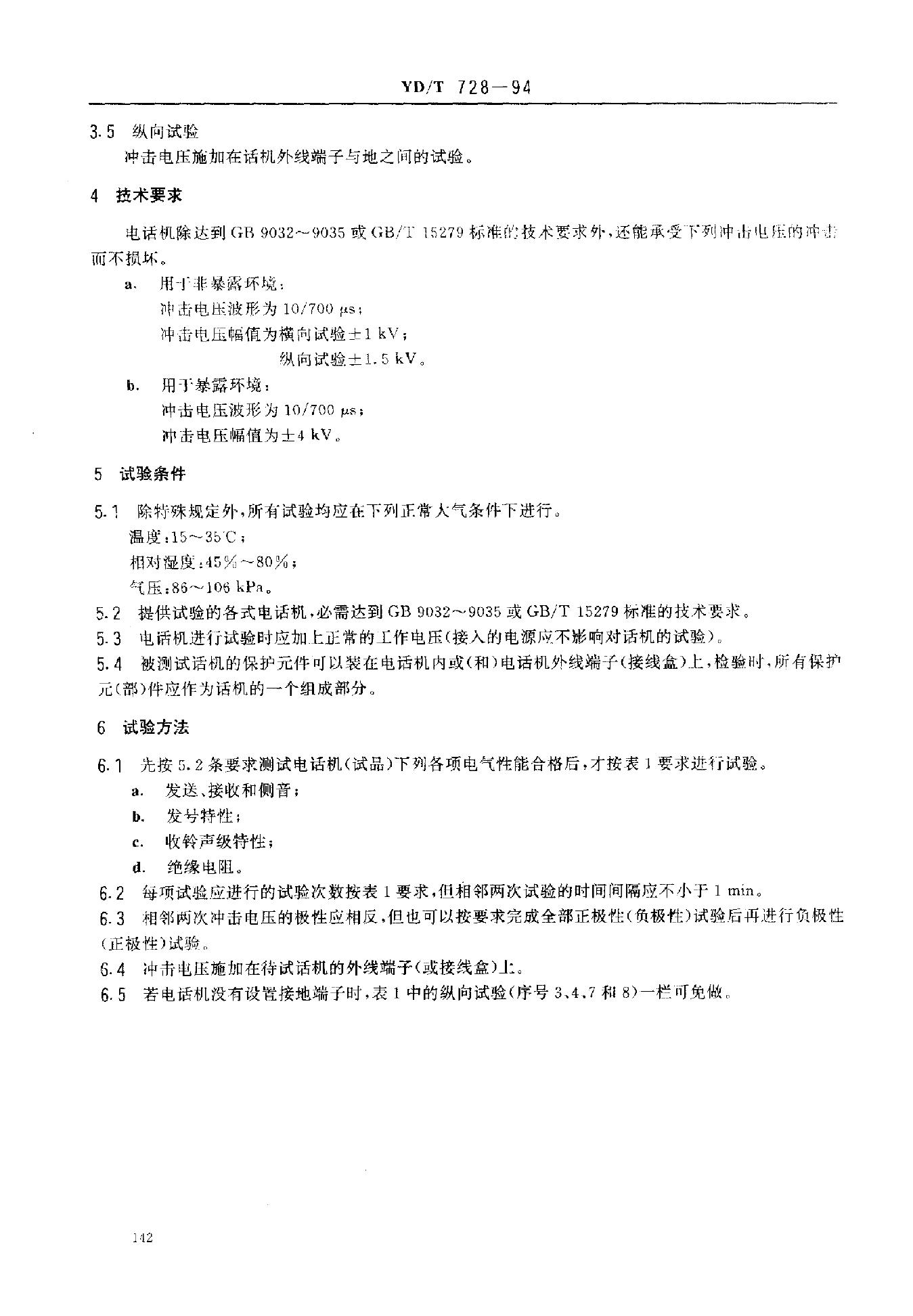 YD/T 728-1994 电话机防雷技术要求及测试方法