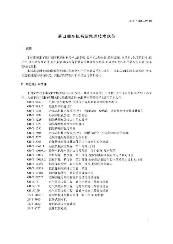 JT/T 1261-2019 港口翻车机系统修理技术规范