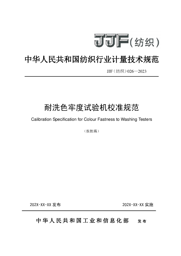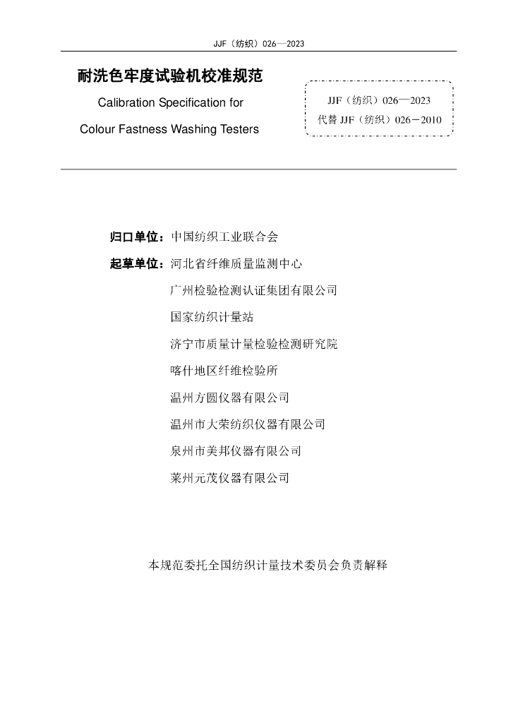 JJF(纺织)026-2023 耐洗色牢度试验机校准规范(报批稿)