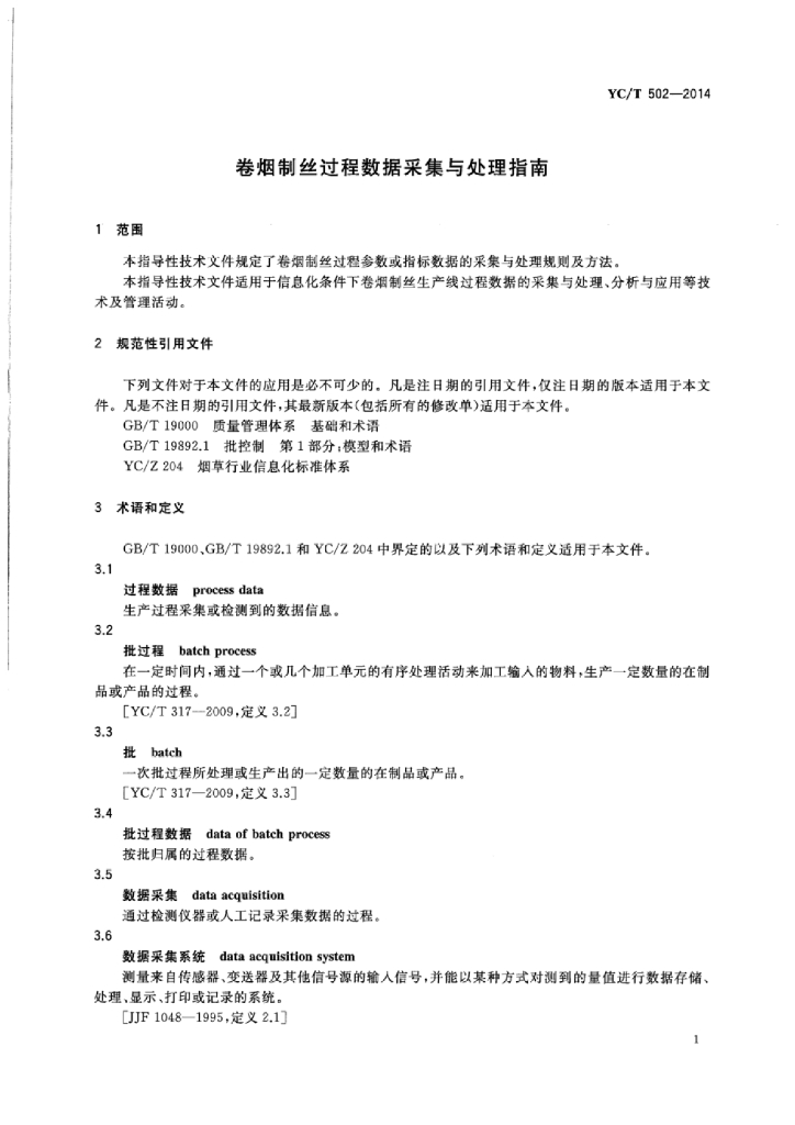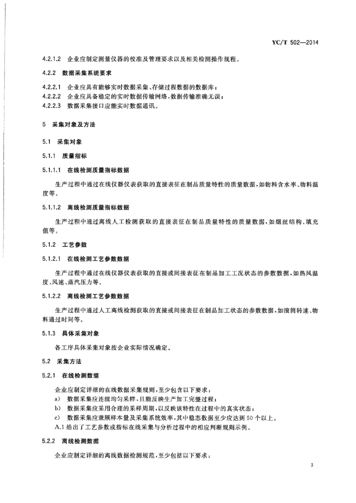 YC/Z 502-2014 卷烟制丝过程数据采集与处理指南