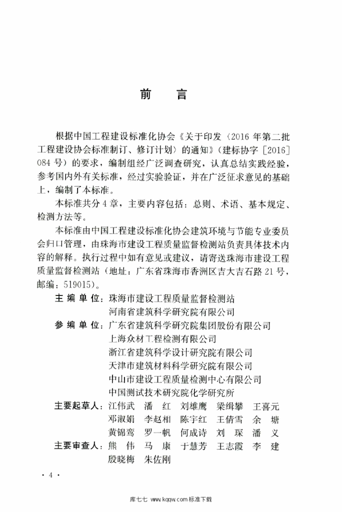 珠海市建设工程质量监督检测站 河南省建筑科学研究院有限公司广东省建筑科学研究院集团股份有限公司 上海众材工程检测有限公司 浙江省建筑科学设计研究院有限公司 天津市建筑材料科学研究院有限公司 中山市建设工程质量检测中心有限公司 中国测试技术研究院化学研究所