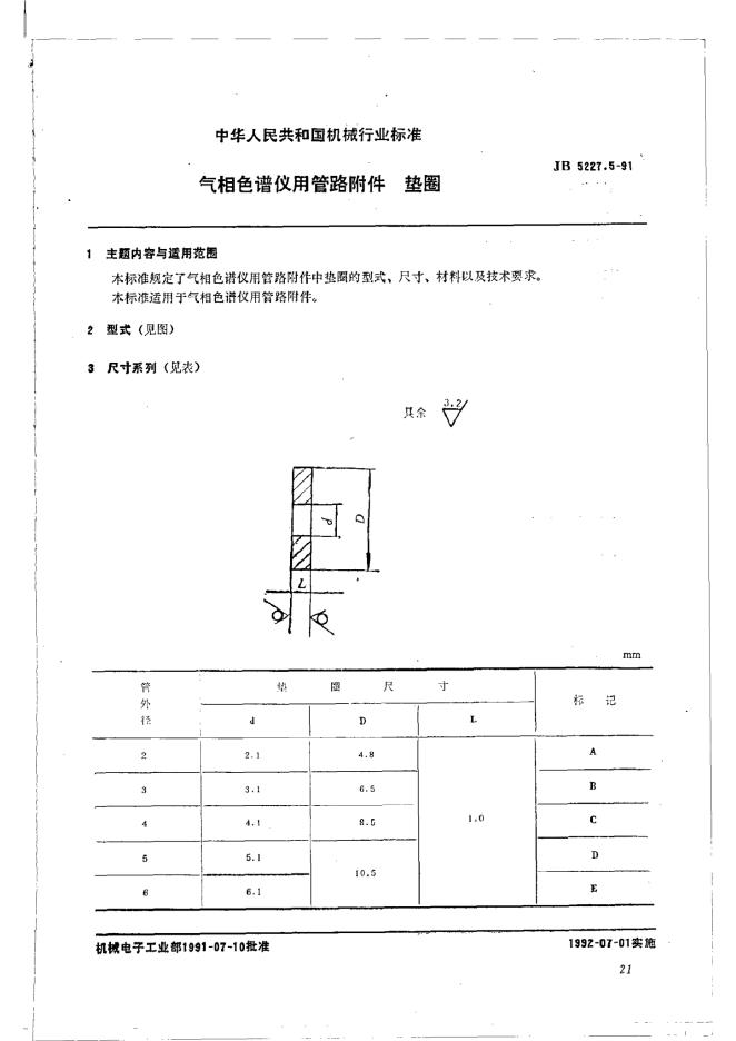 JB 5227.5-1991 气相色谱仪用管路附件 垫圈