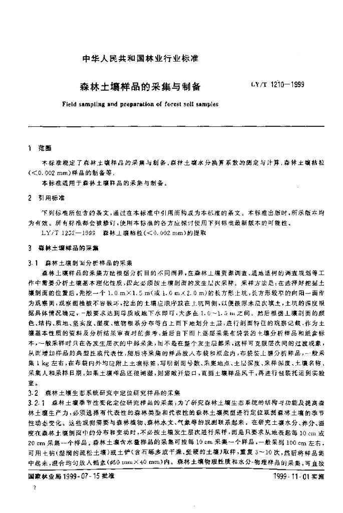 LY/T 1210-1999 森林土壤样品的采集与制备