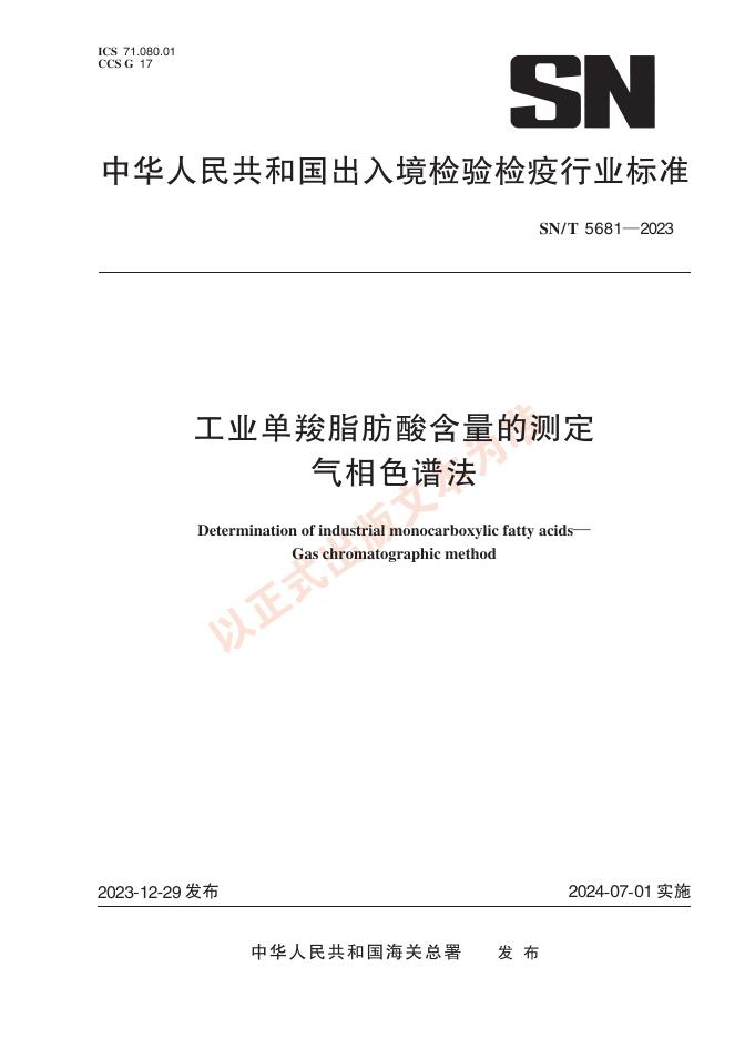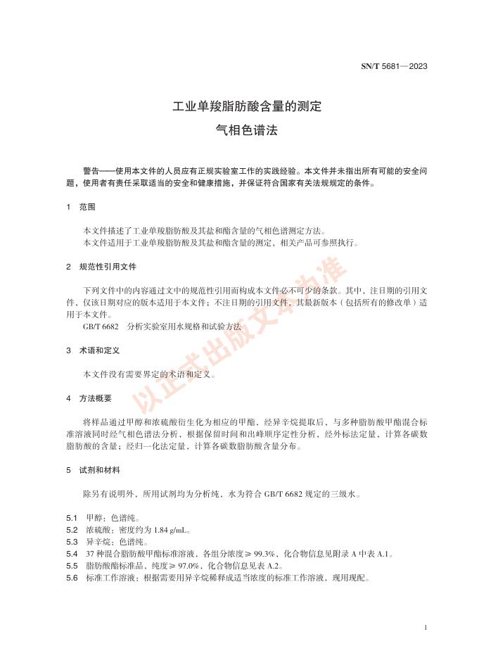 SN/T 5681-2023 工业单羧脂肪酸含量的测定 气相色谱法