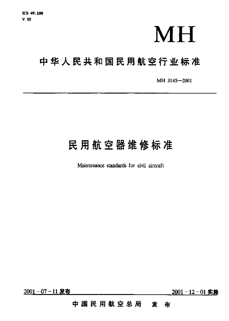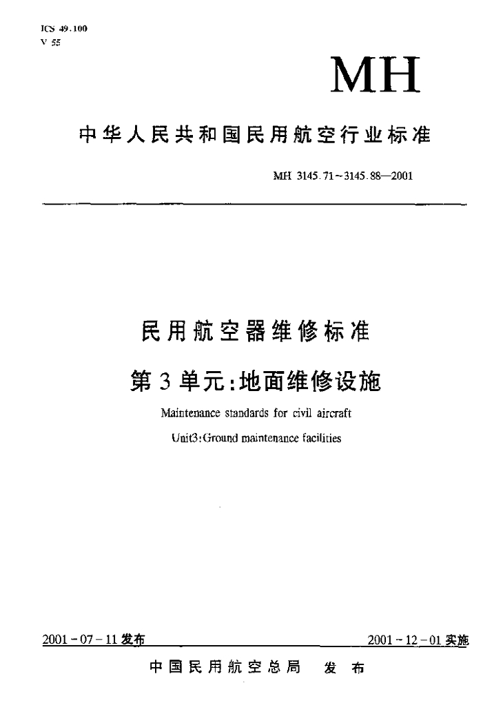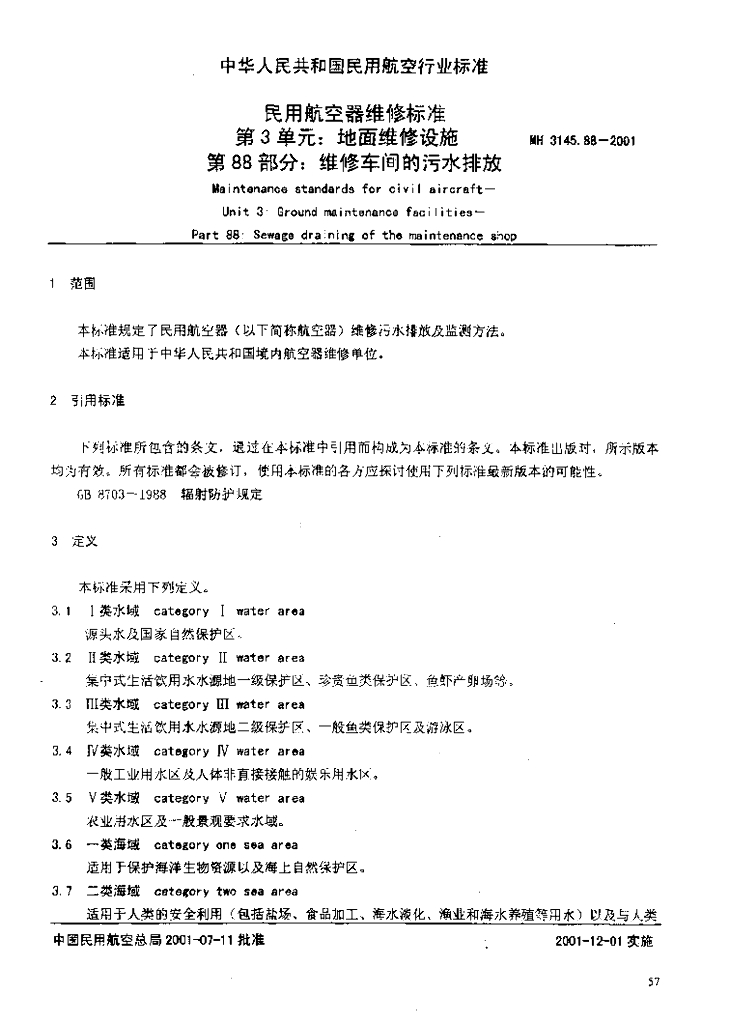 MH 3145.88-2001 民用航空器维修标准 第3单元 地面维修设施 第88部分 维修车间的污水排放