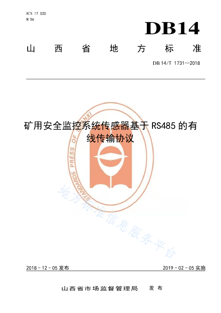 DB14/T 1731-2018 矿用安全监控系统传感器基于RS485的有线传输协议