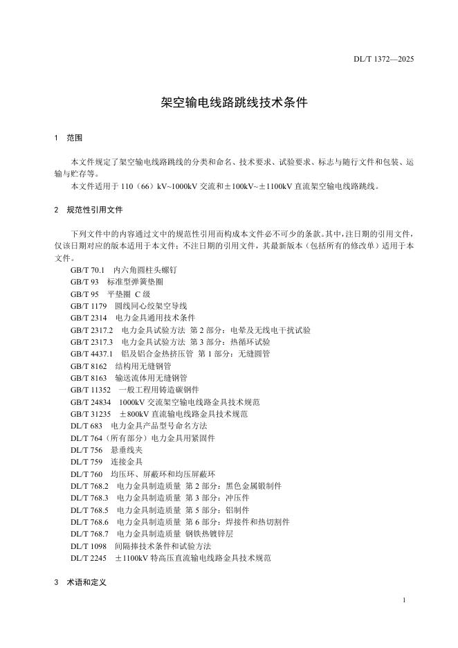 DL/T 1372-2025 架空输电线路跳线技术条件