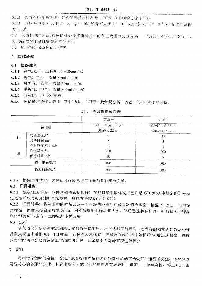 SY/T 0542-1994 稳定轻烃组分分析 气相色谱法
