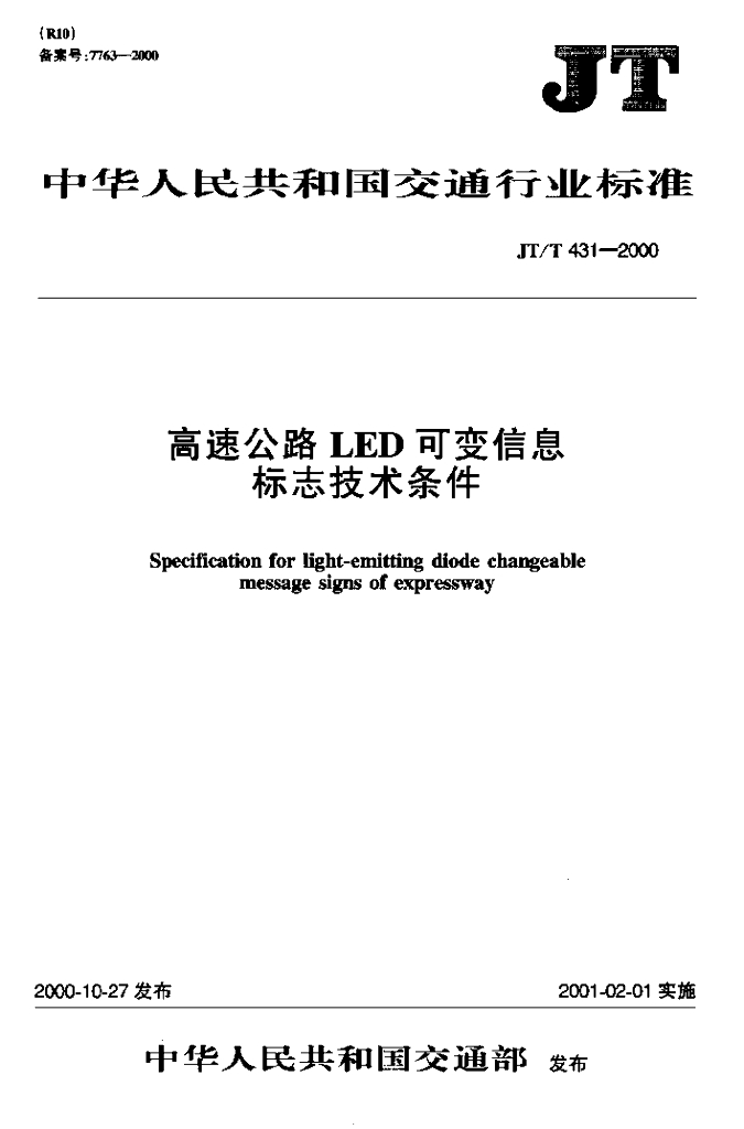 JT/T 431-2000 高速公路LED可变信息标志技术条件
