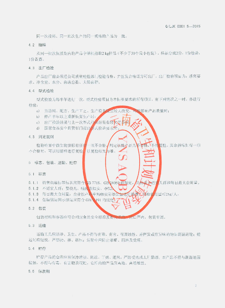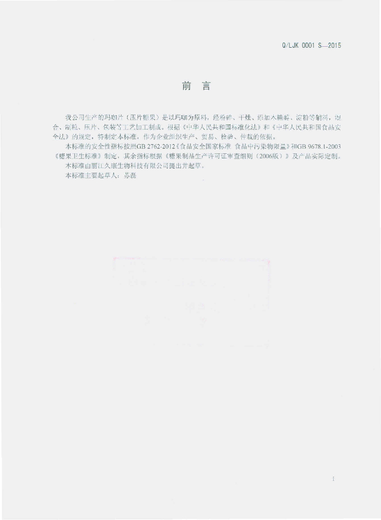 Q/LJK 0001S-2015 丽江久康生物科技有限公司 玛咖片(压片糖果 )