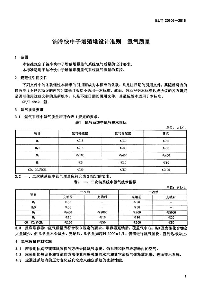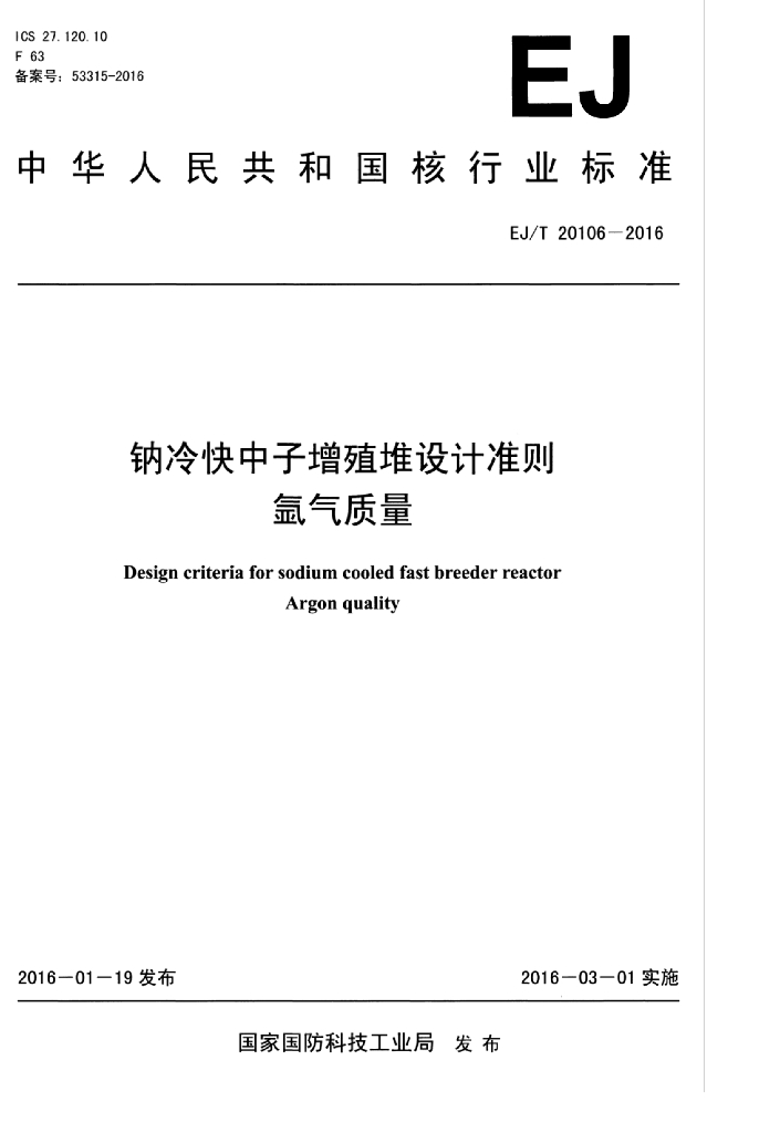 EJ/T 20106-2016 钠冷快中子增殖堆设计准则 氩气质量