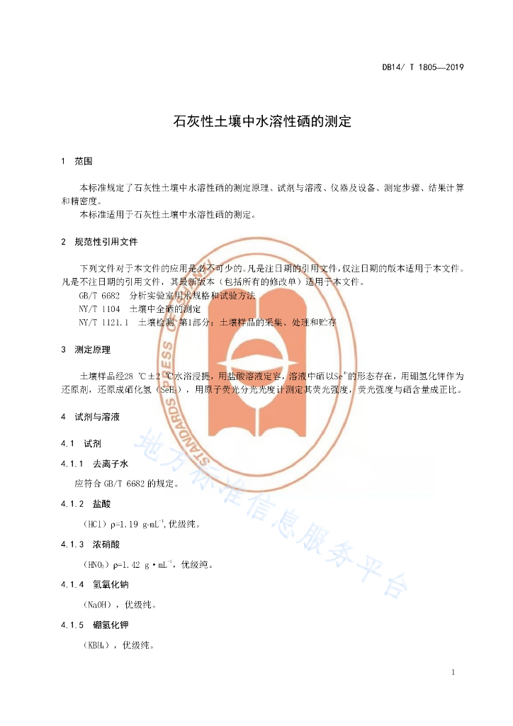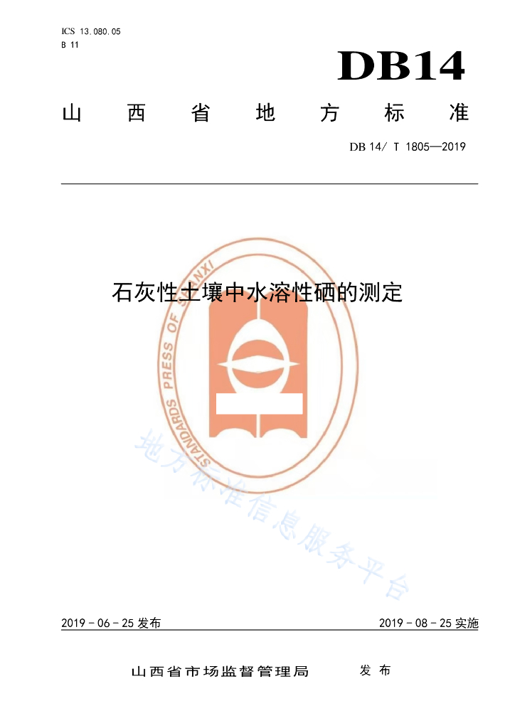 DB14/T 1805-2019 石灰性土壤中水溶性硒的测定
