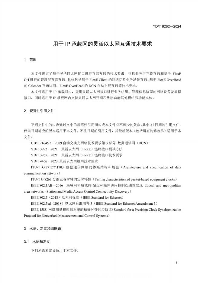 YD/T 6262-2024 用于IP承载网的灵活以太网互通技术要求