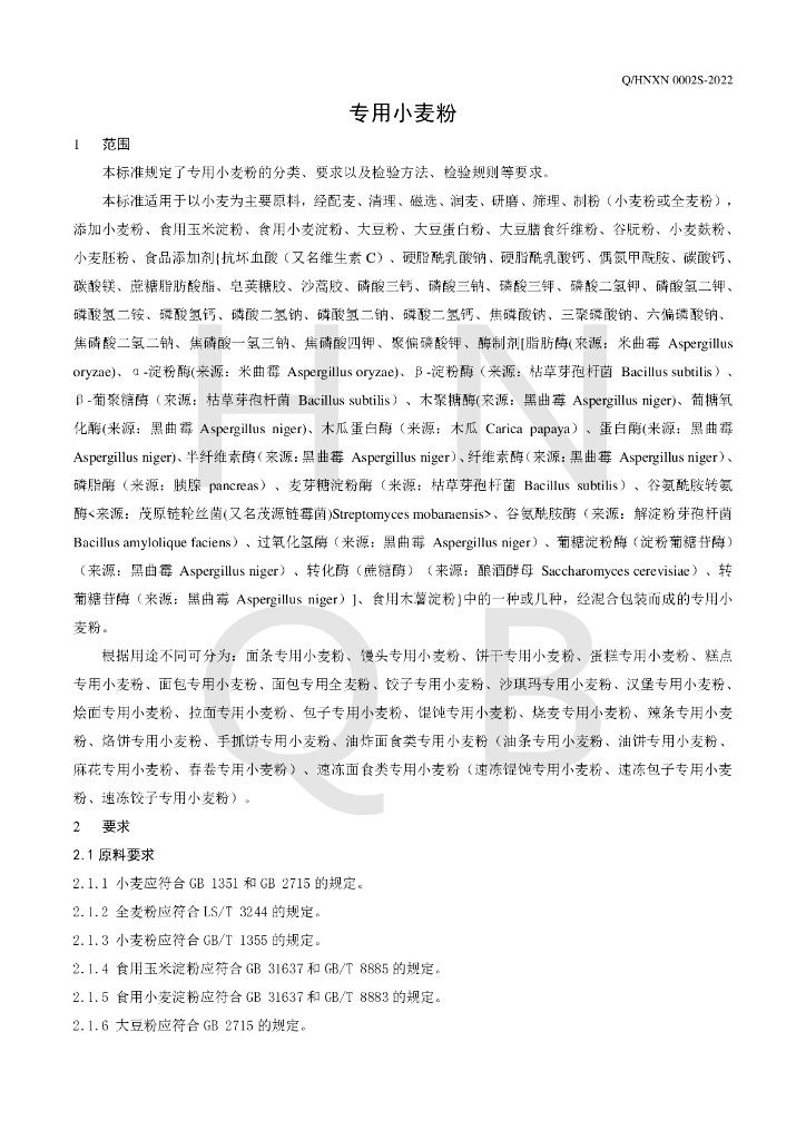 Q/HNXN 0002S-2022 专用小麦粉