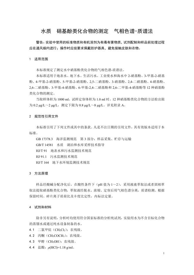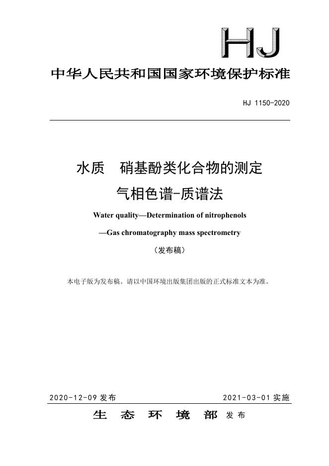 HJ 1150-2020 水质 硝基酚类化合物的测定 气相色谱-质谱法