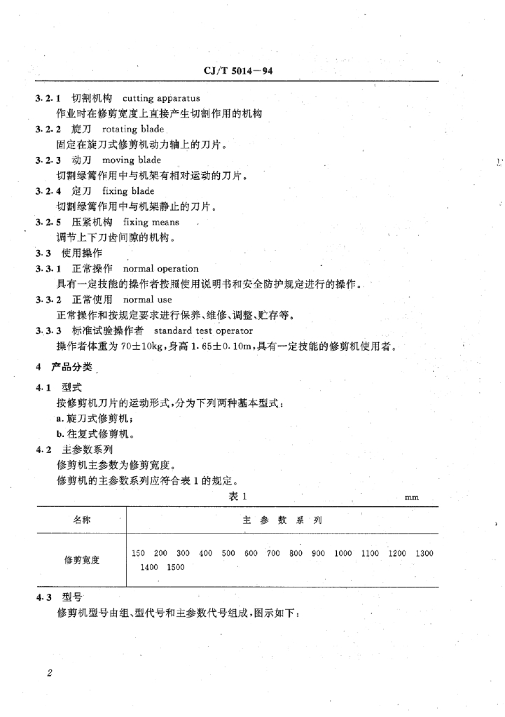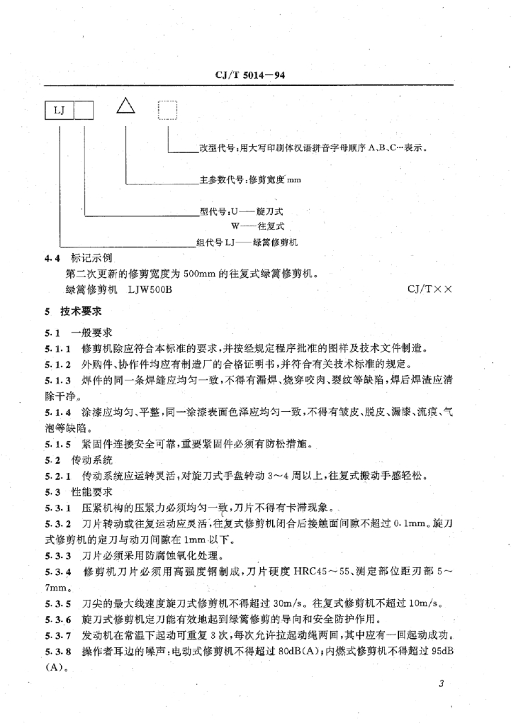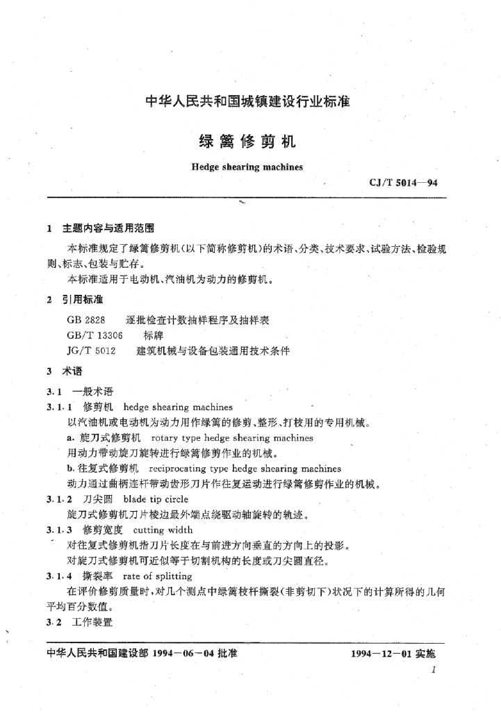 CJ/T 5014-1994 绿篱修剪机