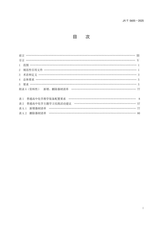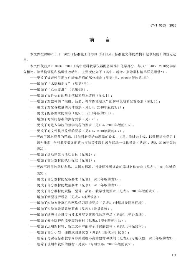 JY/T 0655-2025 普通高中化学教学装备配置标准