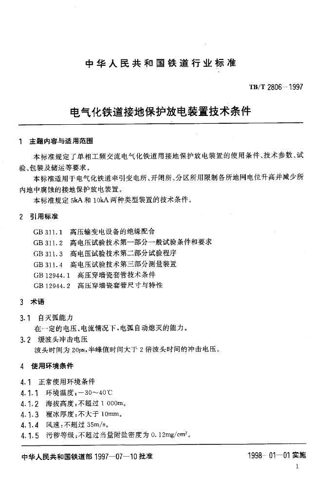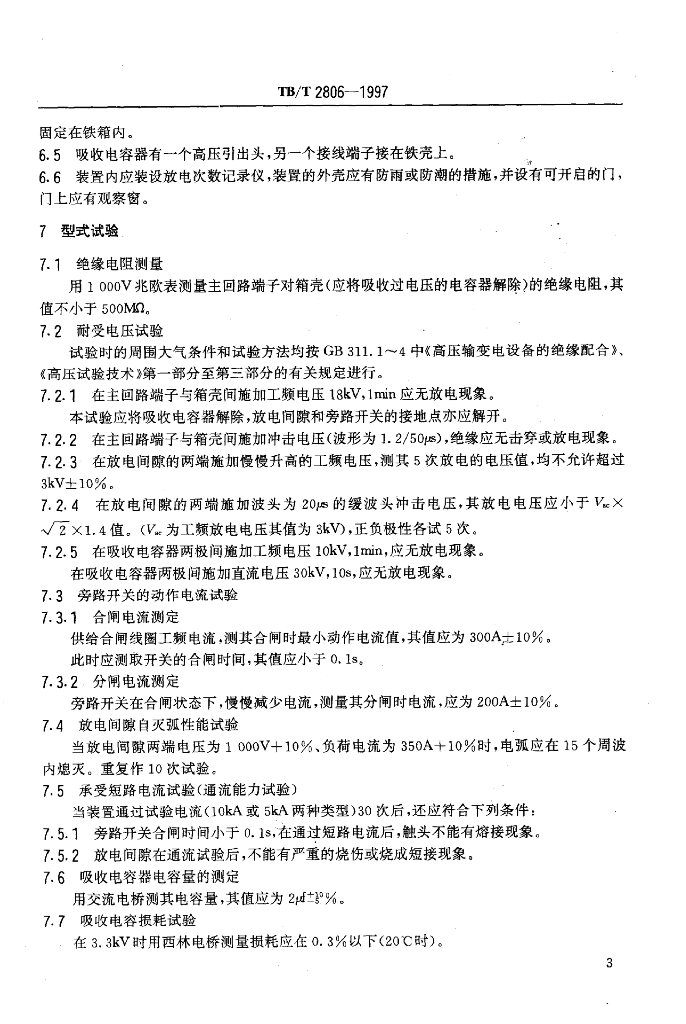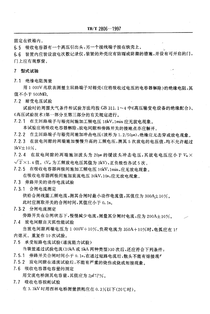 TB/T 2806-1997 电气化铁道接地保护放电装置技术条件
