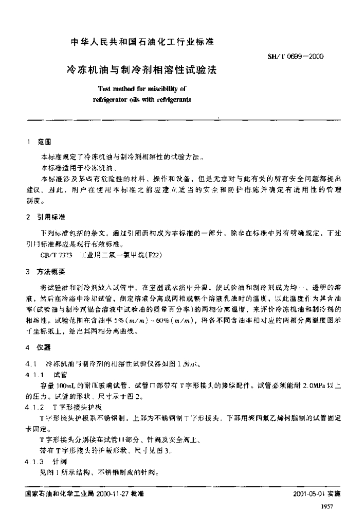 SH/T 0699-2000 冷冻机油与制冷剂相溶性试验法