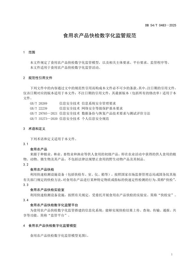 DB54/T 0483-2025 食用农产品快检数字化监管规范