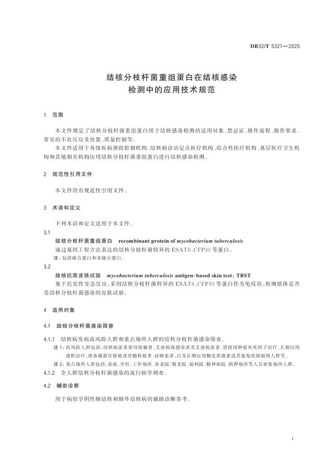 DB32/T 5321-2025 结核分枝杆菌重组蛋白在结核感染检测中的应用技术规范