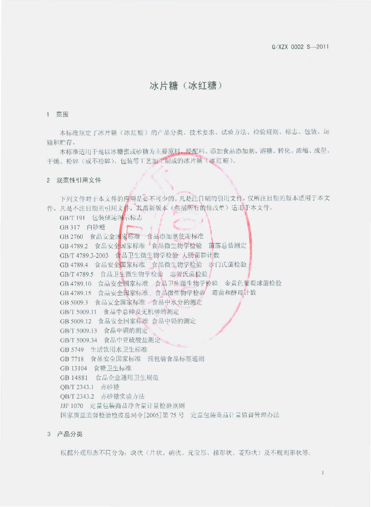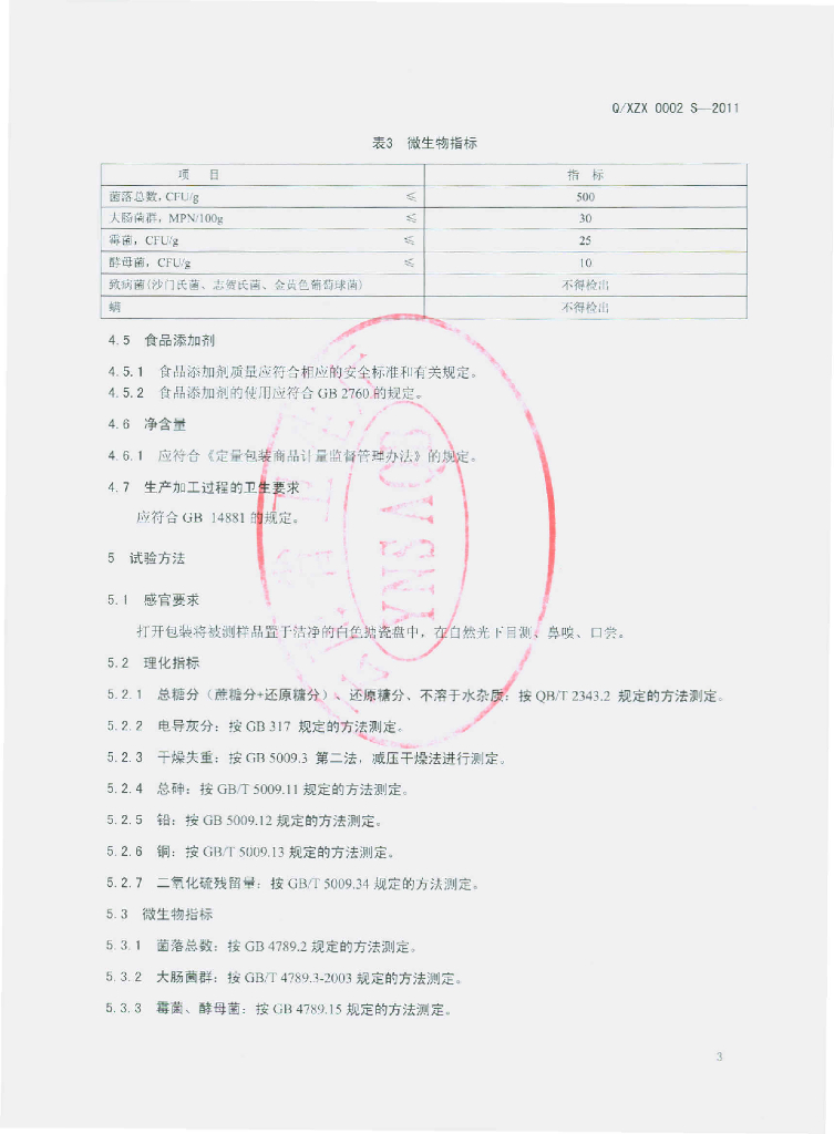 Q/XZX 0002S-2011 冰片糖(冰红糖)