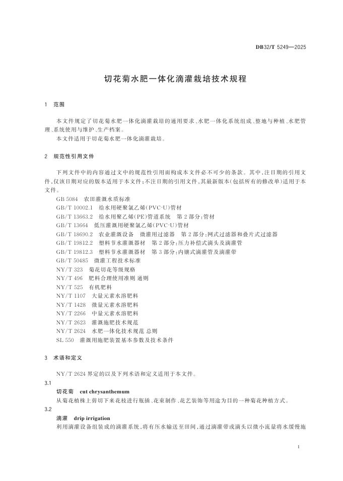 DB32/T 5249-2025 切花菊水肥一体化滴灌栽培技术规程