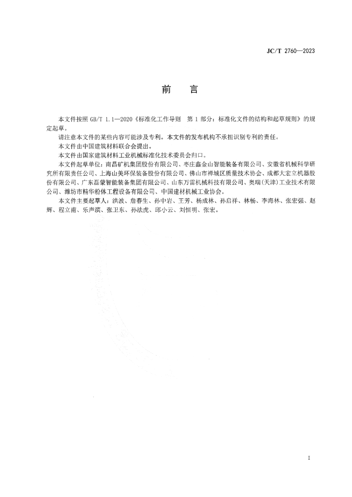 南昌矿机集团股份有限公司、枣庄鑫金山智能装备有限公司、安徽省机械科学研究所有限责任公司、上海山美环保装备股份有限公司、佛山市禅城区质量技术协会、成都大宏立机器股份有限公司、广东磊蒙智能装备集团有限公司、山东万雷机械科技有限公司、奥瑞(天津)工业技术有限公司、潍坊市精华粉体工程设备有限公司、中国建材机械工业协会