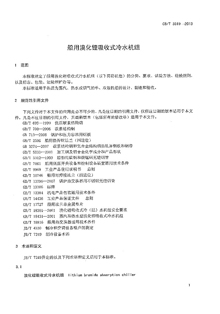 CB/T 3319-2013 船用溴化锂吸收式冷水机组