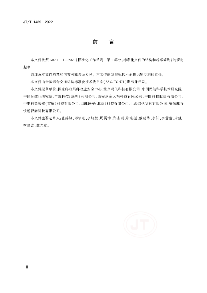 国家邮政局邮政业安全中心、北京鸢飞科技有限公司、中国民航科学技术研究院、中国标准化研究院、丰翼科技(深圳)有限公司、西安京东天鸿科技有限公司、中邮科技股份有限公司、中电科翌智航(重庆)科技有限公司、国邮恒安(北京)科技有限公司、上海韵达货运有限公司、安徽邮谷快递智能科技有限公司