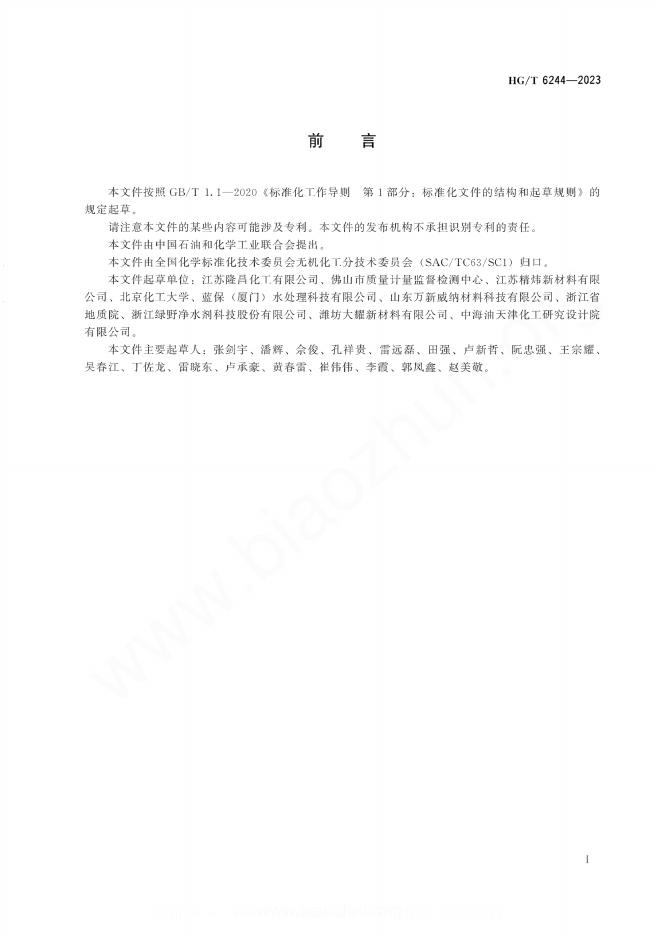 江苏隆昌化工有限公司、佛山市质量计量监督检测中心、江苏精炜新材料有限公司、北京化工大学、蓝保(厦门)水处理科技有限公司、山东万新威纳材料科技有限公司、浙江省地质院、浙江绿野净水剂科技股份有限公司、潍坊大耀新材料有限公司、中海油天津化工研究设计院有限公司