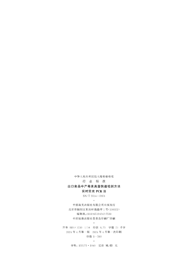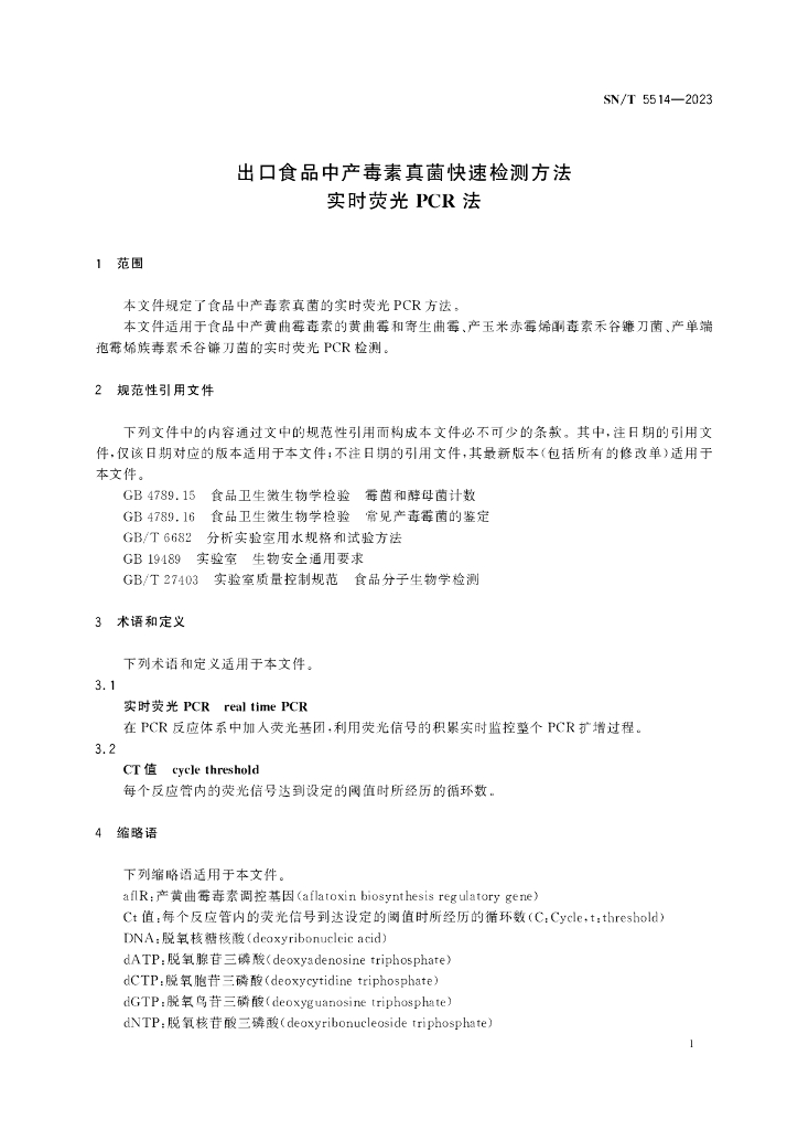 SN/T 5514-2023 出口食品中产毒素真菌快速检测方法 实时荧光PCR法