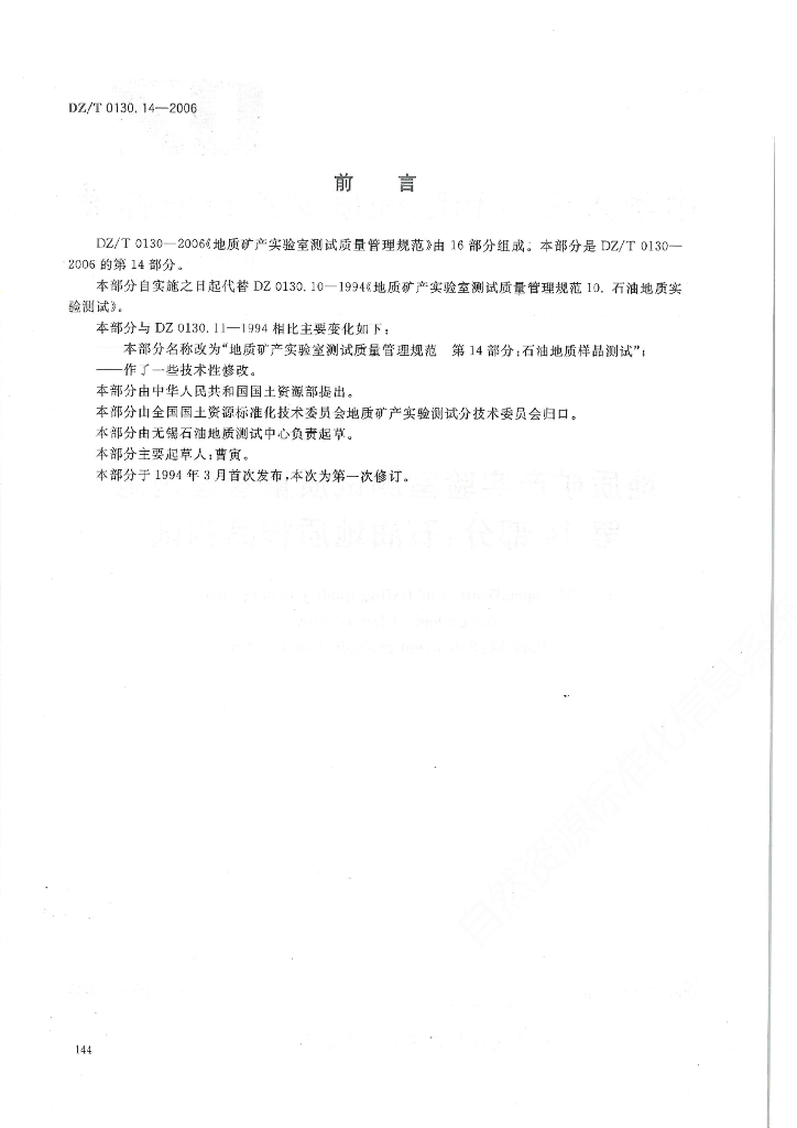 DZ/T 0130.14-2006 地质矿产实验室测试质量管理规范 第14部分:石油地质样品测试