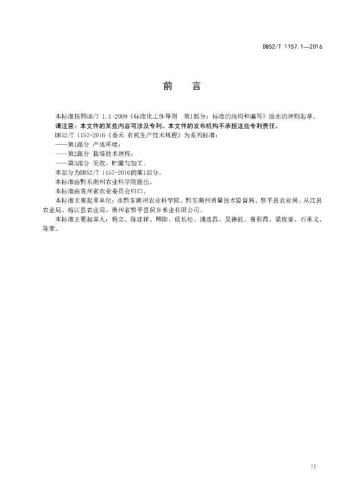 DB52/T 1157.1-2016 香禾有机生产技术规程 第1部分:产地环境