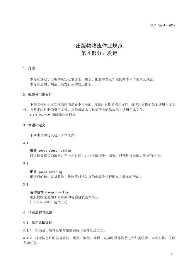 CY/T 56.4-2012 出版物物流作业规范 第4部分:发运