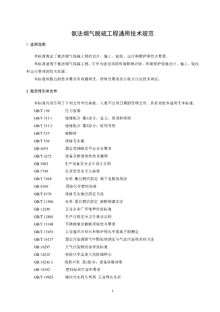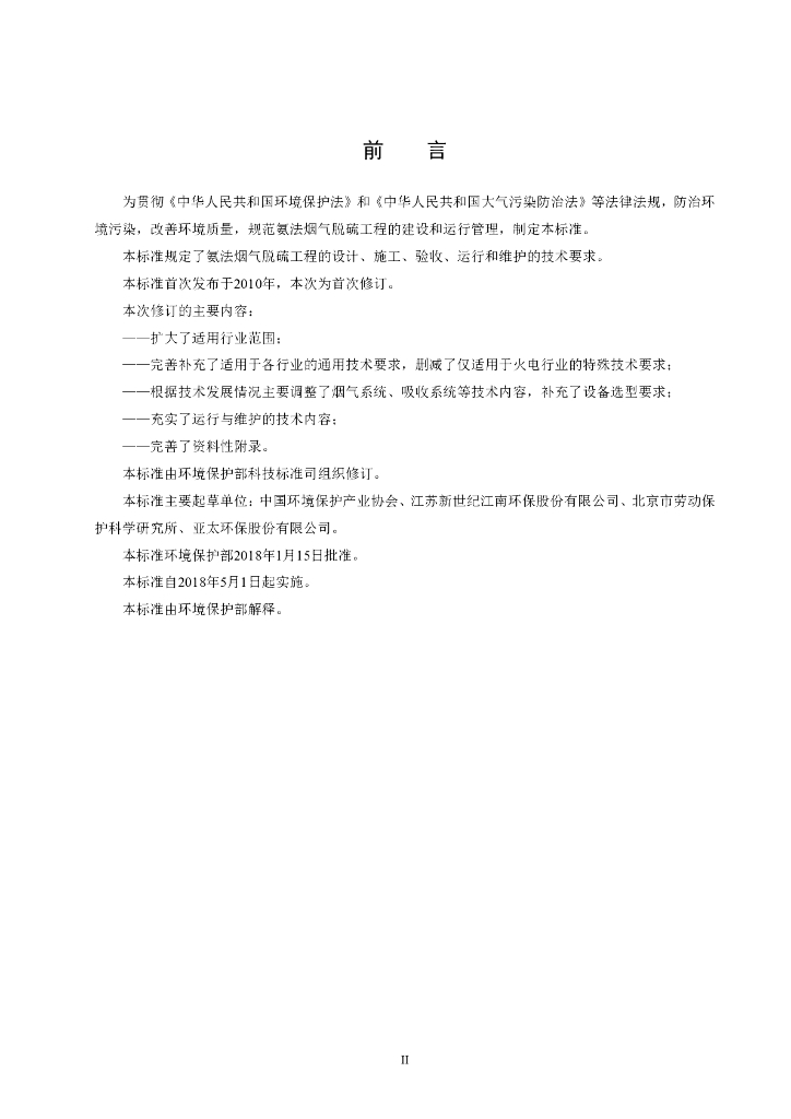 HJ 2001-2018 氨法烟气脱硫工程通用技术规范