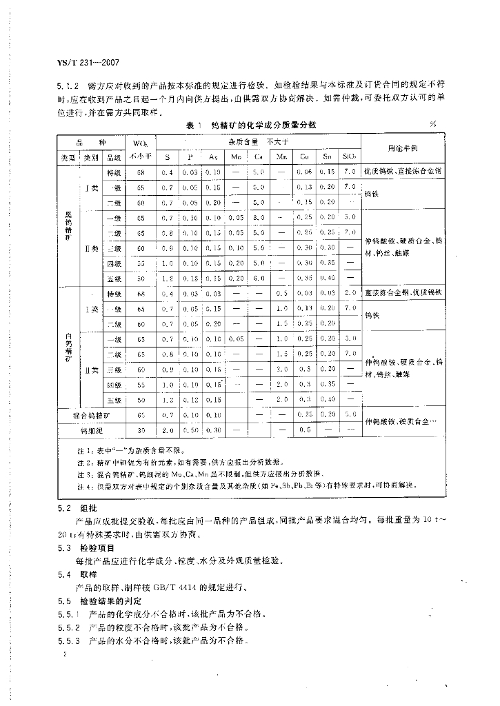 YS/T 231-2007 钨精矿