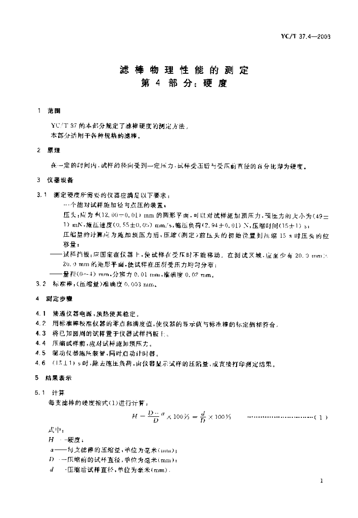 YC/T 37.4-2003 滤棒物理性能的测定 第4部分:硬度