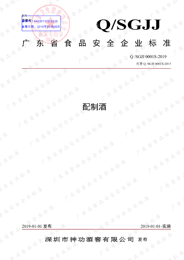 Q/SGJJ 0001S-2019 配制酒