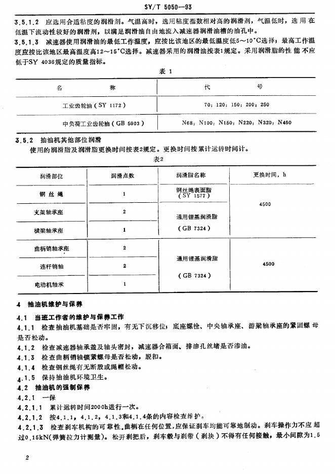 SY/T 5050-1993 游梁式抽油机的使用与维护