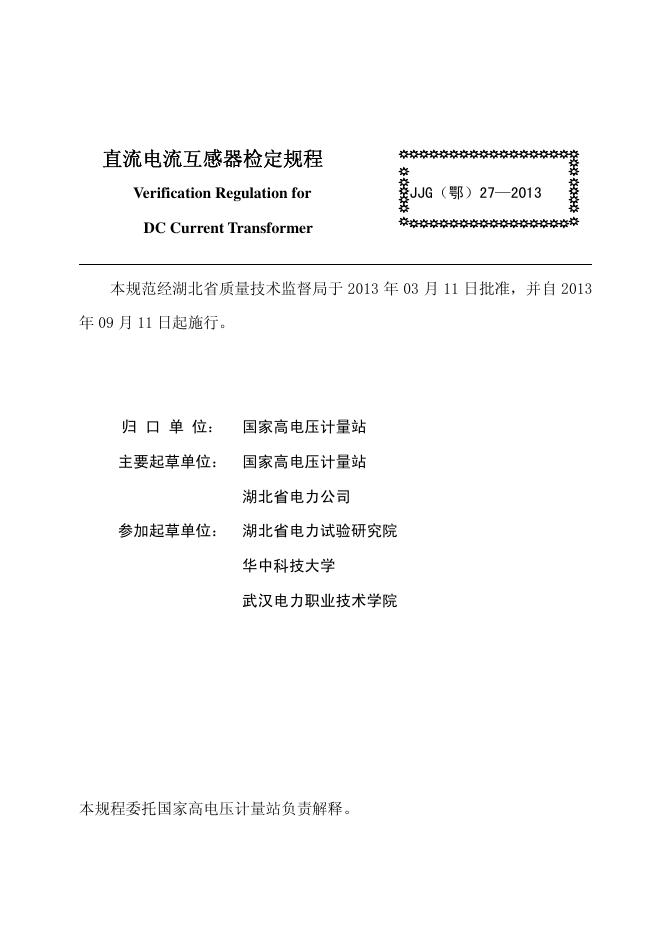 JJG(鄂)27-2013 直流电流互感器检定规程