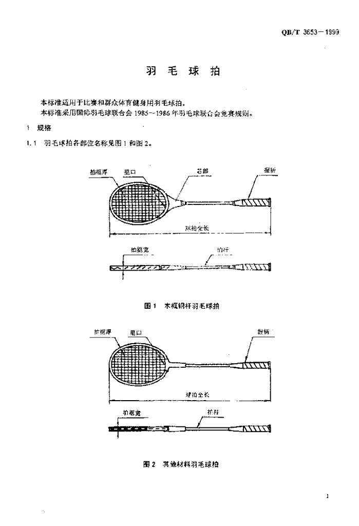 QB/T 3653-1999 羽毛球拍