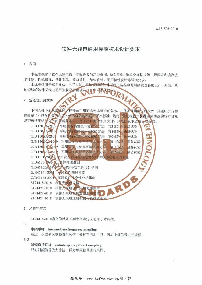 SJ 21508-2018 软件无线电通用接收技术设计要求