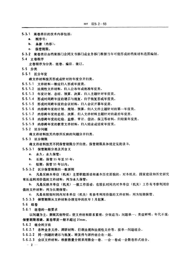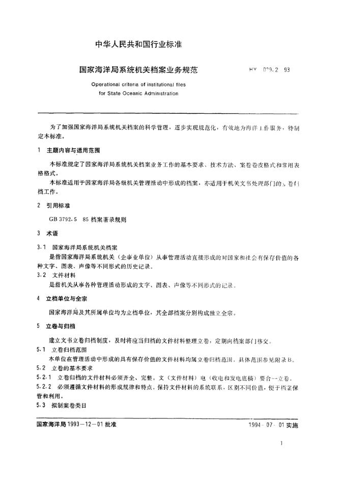 HY 029.2-1993 海洋局系统机关档案规范